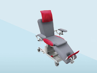 The Multi Therapy chair has impressive, contemporary features and a functional design. The robust, durable construction withstands the daily heavy‐duty stress of clinical practice. It is created for ambulatory nephrological treatment (haemodialysis, peritoneal dialysis), transfusion medicine (plasmapheresis, blood cell separation) and oncology.